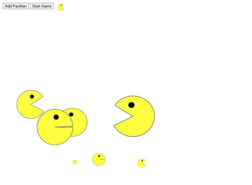 - When the browser is loaded, click on the ‘Add PacMan’ button *the more you click, the more Pacmen are created